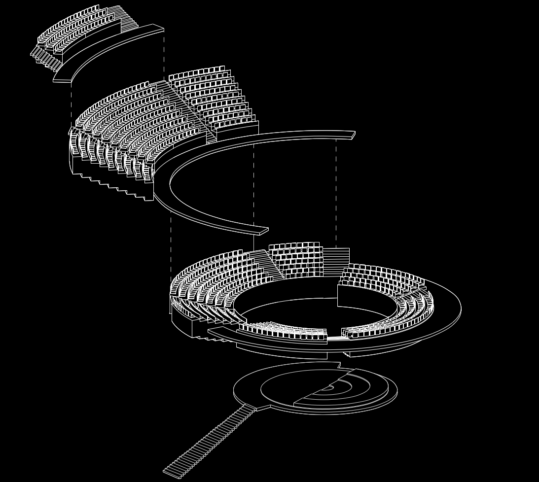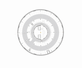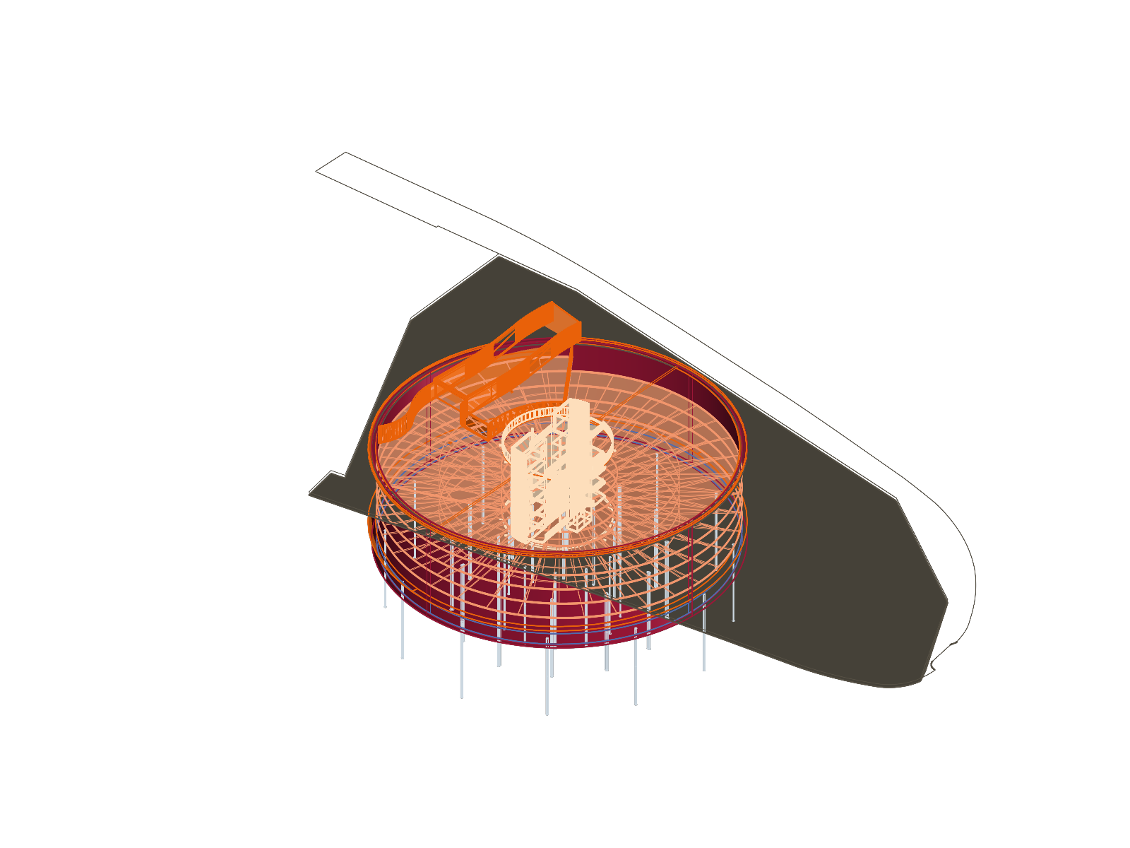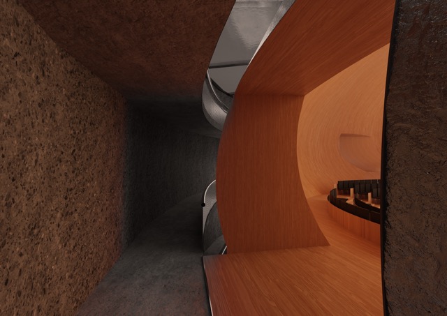 A spiraling ramp guides visitors down through the structure